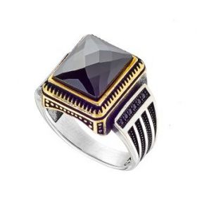 ανδρικό δαχτυλίδι από ασήμι 925, επιχρυσωμένο με μεγάλη μαύρη πέτρα ζιργκόν