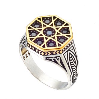 ανδρικό δαχτυλίδι από ασήμι 925 επιχρυσωμένο με μαύρα ζιργκόν