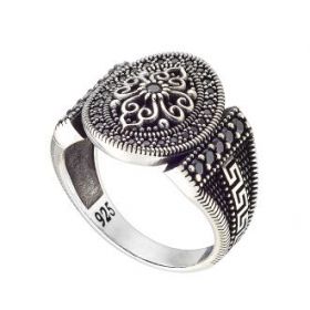 ανδρικό δαχτυλίδι ασημένιο, σκαλιστό με μαύρα ζιργκόν Κωδ.:  SC03379