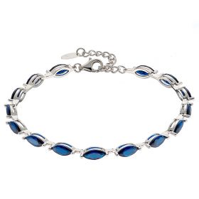 γυναικείο βραχιόλι από ασήμι 925 επιπλατινωμένο ριβιέρα με οβάλ μπλε ζιργκόν