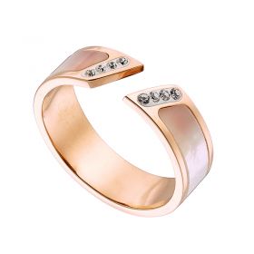 Δαχτυλίδι από ανοξείδωτο ατσάλι, ροζ χρυσό με οπάλιο και λευκά κρύσταλλα CZ