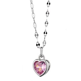 κολιέ ασημένιο 925 εππλατινωμένο, καρδούλα μικρή με ροζ ζιργκόν