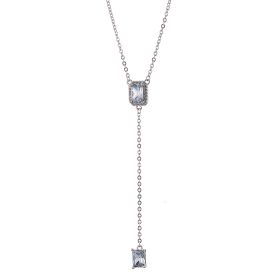 γυναικείο κολιέ από ασήμι 925 επιπλατινωμένο, γραβάτα με λευκά ζιργκόν