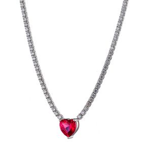 γυναικείο κολιέ από ασήμι 925 επιπλατινωμένη ριβιέρα, με μια κόκκινη καρδιά ζιργκόν