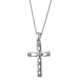 κολιέ σταυρός με αλυσίδα από ασήμι 925, εππλατινωμένος με λευκά ζιργκόν