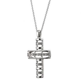 κολιέ σταυρός με αλυσίδα από ασήμι 925, εππλατινωμένος με λευκά ζιργκόν