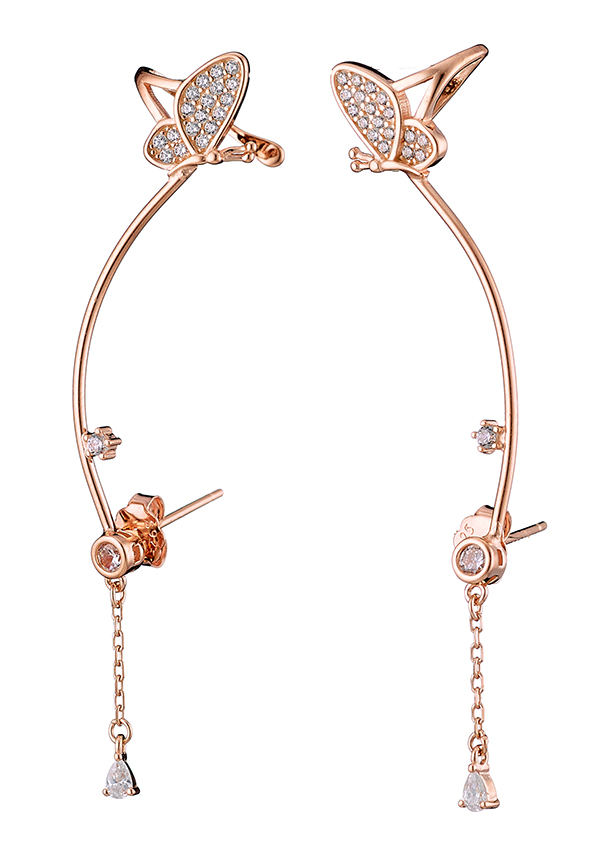 σκουλαρίκι ασημένιο 925 ροζ χρυσό ear climber με λευκά ζιργκόν