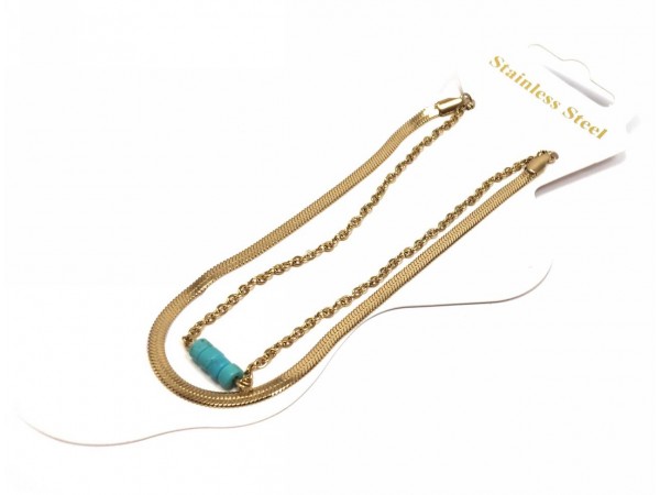 2212-563X Βραχιόλι Ποδιού Ατσάλι 316L, διπλη αλυσίδα με τυρκουάζ σε χρώμα Χρυσαφί