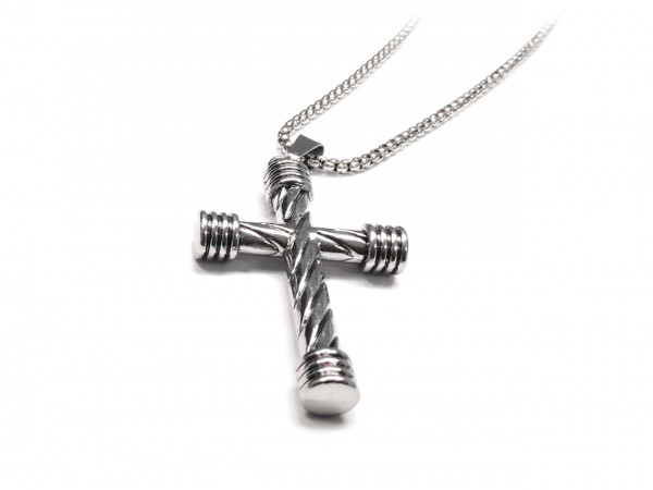 2312-908 Αντρικό Κολιέ Ατσάλι 304, αλυσίδα με σταυρό σε χρώμα Ασημί, Μήκος 70cm, Πλάτος 0,2cm