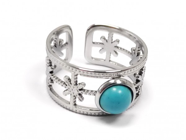 112-454A Δαχτυλίδι Ατσάλι 316L, με τυρκουάζ σε χρώμα Ασημί.