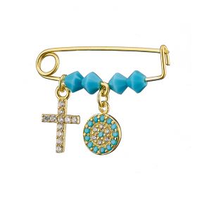 Παραμάνα βρεφική από ασήμι 925, επιχρυσωμένη με ματάκι με γαλάζιες πέτρες