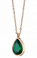 Κολιέ από ανοξείδωτο ατσάλι δάκρυ σε ροζ χρυσό με πράσινο ζιργκόν