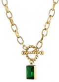 Κολιέ ατσάλινο 316L επιχρυσωμένο με τετράγωνη πράσινη πέτρα ζιργκόν