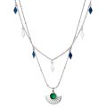 Κολιέ από ανοξείδωτο ατσάλι 316L ασημί διπλό με πράσινη πέτρα
