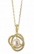 κολιέ ασημένιο επιχρυσωμένο με πέρλα Majorica και λευκά ζιργκόν