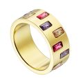 Δαχτυλίδι από ανοξείδωτο ατσάλι επιχρυσωμένο βέρα φαρδιά με καρέ χρωματιστά ζιργκόν
