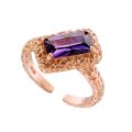 δαχτυλίδι ασημένιο σε ροζ χρυσό, με πέτρα καρέ μωβ ζιργκόν free size