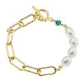Βραχιόλι ατσάλινο 316L επιχρυσωμένο με πέρλες και γαλάζιο κρύσταλλο