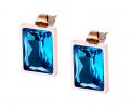 Σκουλαρίκι ατσάλινο 316L καρφωτό ροζ χρυσό με γαλάζια πέτρα ζιργκόν
