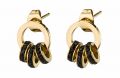 Σκουλαρίκι ατσάλινο 316L καρφωτό σε χρυσό με μαύρα κρύσταλλα CZ