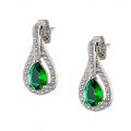 σκουλαρίκι ασημένιο 925 επιπλατινωμένο κρεμαστό δάκρυ με πράσινα και λευκά ζιργκόν