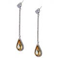 σκουλαρίκι ασημένιο 925 επιπλατινωμένο μακρύ με λευκά και μελί ζιργκόν