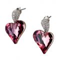 σκουλαρίκι ασημένιο 925 επιπλατινωμένο κρεμαστή καρδιά με μωβ κρύσταλλα και πέτρες ζιργκόν