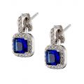 σκουλαρίκι ασημένιο 925 επιπλατινωμένο κρεμαστό τετράγωνο με μπλε και λευκά ζιργκόν