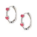 ασημένιο σκουλαρίκι κρικάκι επιπλατυνωμένο με κόκκινες καρδιές