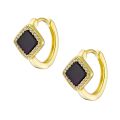 σκουλαρίκι ασημένιο επιχρυσωμένο κρικάκι με μαύρη πέτρα αχάτη