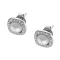 ασημένιο σκουλαρίκι επιπλατινωμένο τετράγωνο με πέρλα και λευκά ζιργκόν
