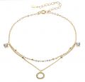 ασημένια αλυσίδα ποδιού επιπλατινωμένη διπλή με λευκά ζιργκόν
