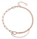 αλυσίδα ποδιού ασημένια 925 σε ροζ χρυσό, με διπλή και κρεμαστή αλυσίδα