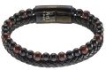 Βραχιόλι ατσάλινο 316L με μαύρο δέρμα διπλό με ορυκτές πέτρες