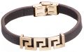 Βραχιόλι ατσάλινο 316L με καφέ δέρμα και μαίανδρο σε ροζ χρυσό