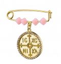 Παραμάνα βρεφική από ασήμι 925, επιχρυσωμένη με Κωνσταντινάτο διπλής όψης με λευκά ζιργκόν
