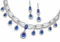 Ασημένιο σετ κοσμημάτων με λευκά ζιργκόν κατασκευής Micro Pave και blue topaz πέτρες ζιργκόν. Το σετ περιλαμβάνει σκουλαρίκια και κολιέ