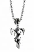 Κολιέ από ανοξείδωτο ατσάλι 316L ασημί σπαθί με μαύρο σμάλτο