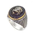 ανδρικό δαχτυλίδι από ασήμι 925 επιχρυσωμένο με λιοντάρι και μαύρα ζιργκόν