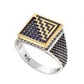 ανδρικό δαχτυλίδι από ασήμι 925 επιχρυσωμένο τετράγωνο με μαύρα ζιργκόν