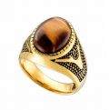 Δαχτυλίδι ατσάλινο 316L ανδρικό επιχρυσωμένο με πέτρα μάτι της τίγρης