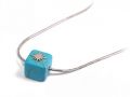 2212-475A Κολιέ Ατσάλι 316L, αλυσίδα με τυρκουάζ κύβο σε χρώμα Ασημί, Μήκος 40cm
