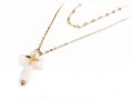 2212-472X Κολιέ Ατσάλι 316L, διπλή αλυσίδα με σταυρό φίλντισι σε χρώμα Χρυσαφί, Μήκος 40cm