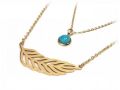 2212-458X Κολιέ Ατσάλι 316L, διπλή αλυσίδα με τυρκουάζ σε χρώμα Χρυσαφί, Μήκος 40cm