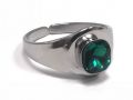 2222-024A Δαχτυλίδι Ατσάλι 316L, με πράσινο κρυσταλλάκι σε χρώμα Ασημί