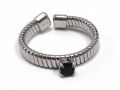 2222-023A Δαχτυλίδι Ατσάλι 316L, με μαύρο κρυσταλλάκι σε χρώμα Ασημί