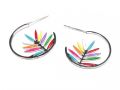 2312-427A Σκουλαρίκια Ατσάλι 316L, κρίκος με πολύχρωμο σχέδιο σε χρώμα Ασημί, Διάμετρος 2cm