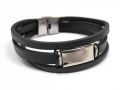 2212-004 Αντρικό Βραχιόλι Ατσάλι 304, με δέρμα τριπλό σε χρώμα Μαύρο, Μήκος 22cm