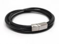 2212-001 Αντρικό Βραχιόλι Ατσάλι 316, με δέρμα διπλό σε χρώμα Μαύρο, Μήκος 41cm