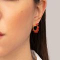 Σκουλαρίκια Excite fashion jewellery κρικάκια από επίχρυσο ατσάλι με κοραλί πέτρες. S-1578-01-35-49